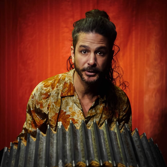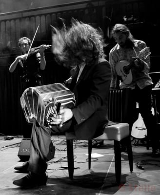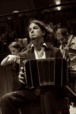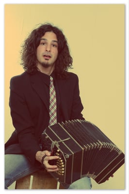 D'une voix vagabonde aux racines profondes, il souffle la Pampa qui souffre dans ses chants. Ni traits mous, ni trémolos, son visage est comme les chants engagées de sa terre natale. Plusieurs maitres, plusieurs voix pour un unique chemin, plusieurs pays pour un seul univers, le Tango. A 20 ans, il se laisse emporter par un vent ascendant et tutoie au gré des tourbillons une nuée de styles qu'il aspire aux grands maestros tant en Argentine qu'en Uruguay pour les expirer après s'être mêlés aux alizés de l'Atlantique, en un zéphyr suave et sensible qu'il module au bandonéon dans les festivals et milongas de France et d'Espagne. Il chérit et les vocales et les cordes de sa guitare. Autodidacte, il ne s'en laisse pas moins dicter ses choix musicaux : apôtre de Goyeneche, disciple de Ribero, son physique christique en fait un chantre de thèmes plus révolutionnaires.