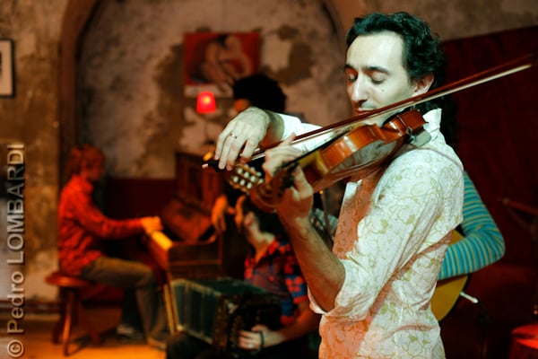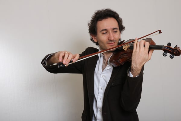 Dans les jurys, on craque à l'unisson pour ce crack du pays des kraks. Sans vous raconter des craques, si rien n'arrêtait cet artiste au patronyme Damascène, il tirerait d'une scie un solo dans la scierie. Du classique, il en apporte la classe sans hic et se plaît à mêler son chic au choc culturel de musiques plurielles, plus rap. Fatalement, cet éclectisme nomade le conduit à vendre l'âme de son violon aux sirènes de Piazzolla et dériver aux côtés de grand maîtres du tango. Non content de vous émouvoir, il sait aussi se mouvoir, danseur de son violon, il en a la cheville au corps, dans ses cours de Tango on n'a pas le bourdon. L'ad-mi-ré Sol-iste, traine sa facilité indécente dans pas moins de quatre grands ensembles.